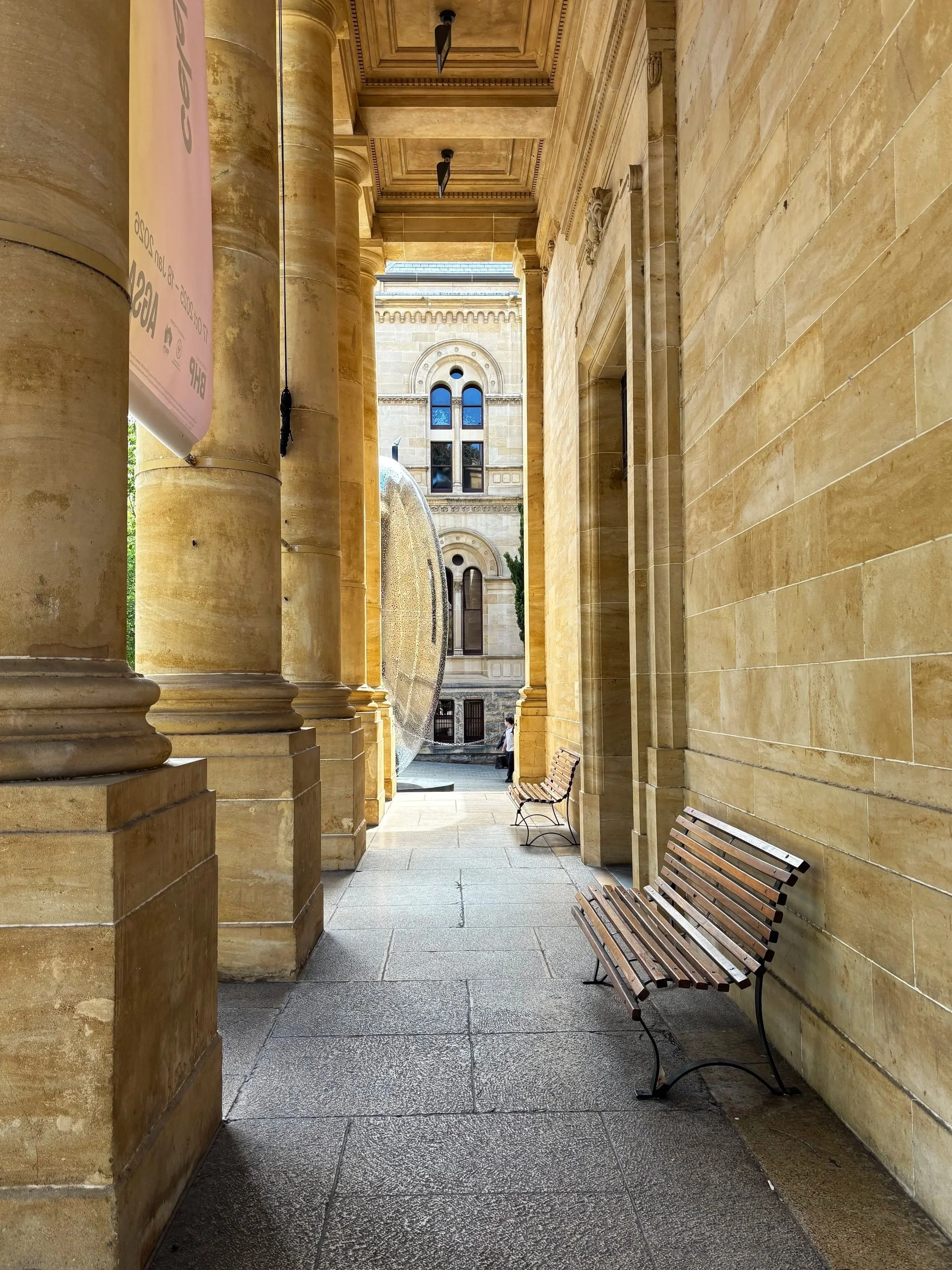 Tykkään kierrellä etenkin pienempiä museoita, kokoelmia ja katsoa taidetta, vaikken siitä varsinaisesti mitään tiedäkään. The Art Gallery of South Australia oli itselleni juuri sopivan kokoinen – ja koska pääsymaksua ei ollut, ei myöskään ollut painetta ”kierrellä koko rahalla”. Museossa on esillä niin alueen historiallista taidetta kuin nykytaiteilijoiden teoksia. Eniten tykkäsin alakerran vaihtuvana näyttelynä olevasta modernista aboriginaalitaiteesta, mutta muuallakin museossa oli kiva kuljeskella ja pysähtyä kiinnostavien kohteiden eteen hetkeksi.