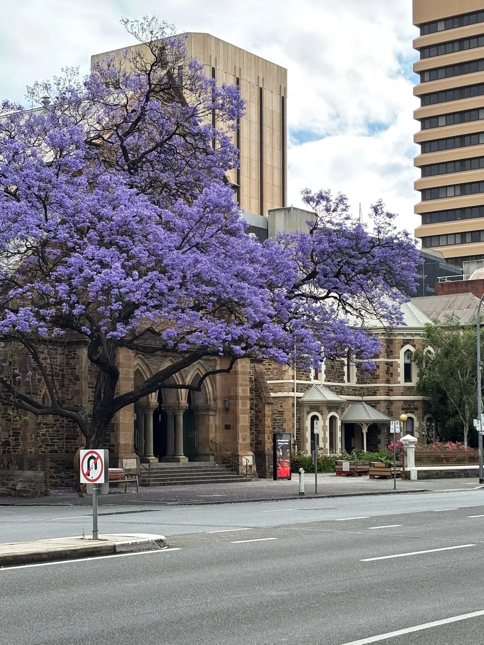 Aamulento Alice Springsistä toi minut Adelaideen, jossa tulisin viettämään seuraavat neljä yötä. Kun jäin lentokenttäbussin kyydistä pois lähellä keskustaa, kaupunki tervehti minua kadunvarsien violeteilla kukkapilvillä ja makealla tuoksulla ilmassa – jakarandapuut olivat kukintansa loppupuolella joulukuun alussa.