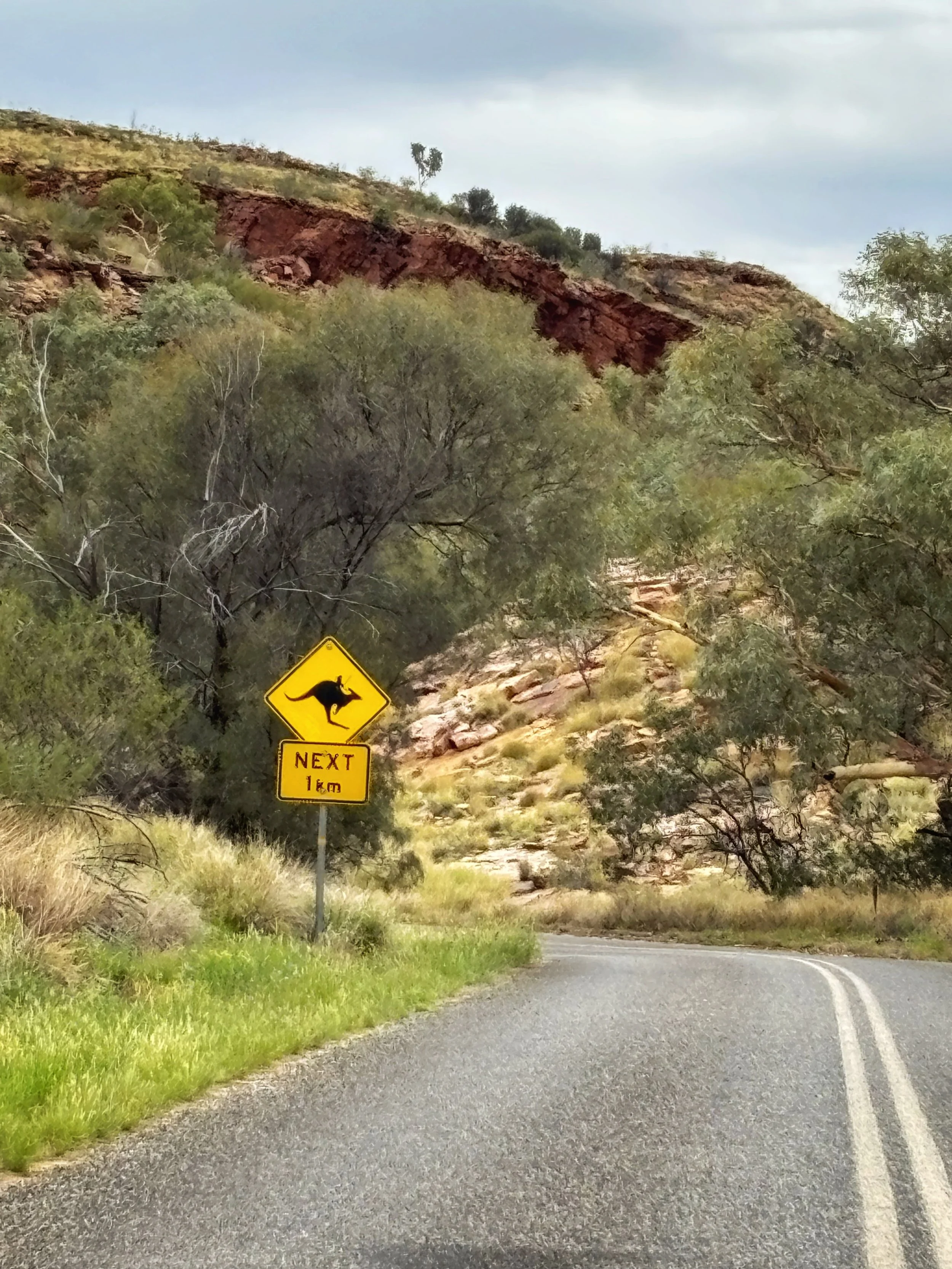 Tästä eteenpäin matkasuunnitelmiini tulikin iso muutos. Minun oli tarkoitus ajaa nelivedollani Mereenie Loop West MacDonnell Rangesille ja yöpyä siellä seuraava yö jollakin muutamasta leirintäalueesta autossani. King’s Canyonissa tankatessani kysyin tien kunnosta huoltoasemalta ja sieltä ei missään tapauksessa suositeltu ajamista. Olinkin jo vähän henkisesti varautunut tähän, sillä sateita oli riittänyt matkani jokaisena päivänä ja edellisen yön ukkosmyrsky oli todellakin vetinen. En halunnut jäädä yksin jumiin keskelle erämaata. Avun odottaminen mahdollisesti parikin päivää, ei tuntunut hyvältä ajatukselta – eikä myöskään siitä seuraava lasku. Joten ajelin sitten satoja kilometrejä ylimääräistä, takaisin kohti Alice Springsiä. En uskaltanut myöskään oikaista Ernest Giles -tien kautta, sillä huoltoaseman mies oli saanut juuri työkaveriltaan sieltä viestin, jossa hän toivoi, että olisi ottanut snorkkelin mukaan. Tuskin olisin siis ainakaan päässyt sitä kautta nopeammin perille. Yöpaikaksi sain budjettimajoituksen (hintaa noin 50€) Stuarts Wellsistä. Hyvin se yö niinkin meni.