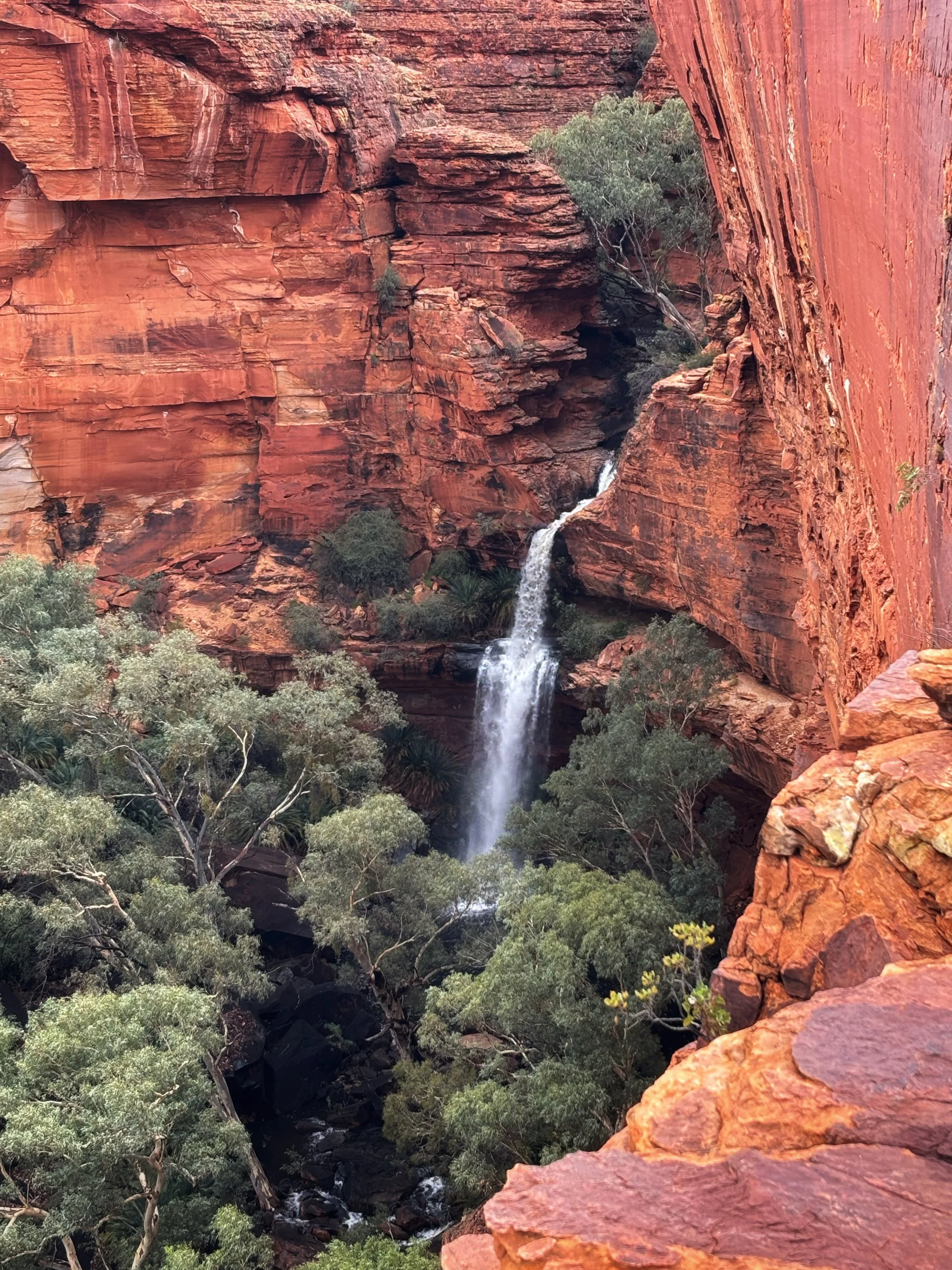 Lyhyen ajomatkan (n. 40 km) päästä löytyi seuraavana aamuna se syy sille miksi tänne olin saapunut. King’s Canyon ja sen 6 km mittainen Rim Walk. Kesäaikaan suositus on aloittaa vaellus aikaisin aamulla. Syy on alun lukuiset portaat ja auringonpaahteessa kuumat oltavat ylhäällä kallioilla. Yhdyn tähän suositukseen.
